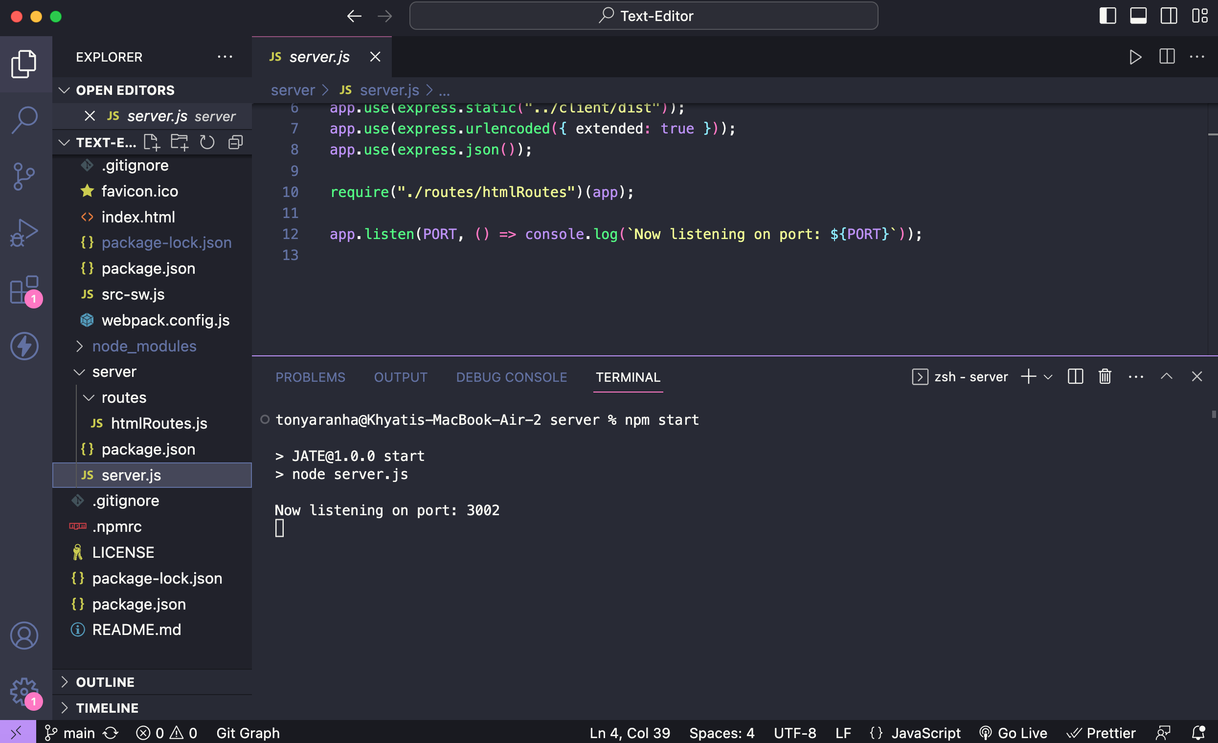 Once the app is running in nodeJS then open http://localhost:3002/ in any browser, and you will have your text editor. You can download the text editor using the install button on top-left and you will be able to access it offline, You can save the data and close the app, once you open the app again you will find your content as you left before.